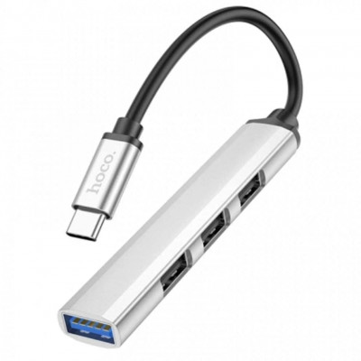 Стыковочная станция HOCO HB26 Type-C на 3xUSB 2.0, 1 USB 3.0 Серебро