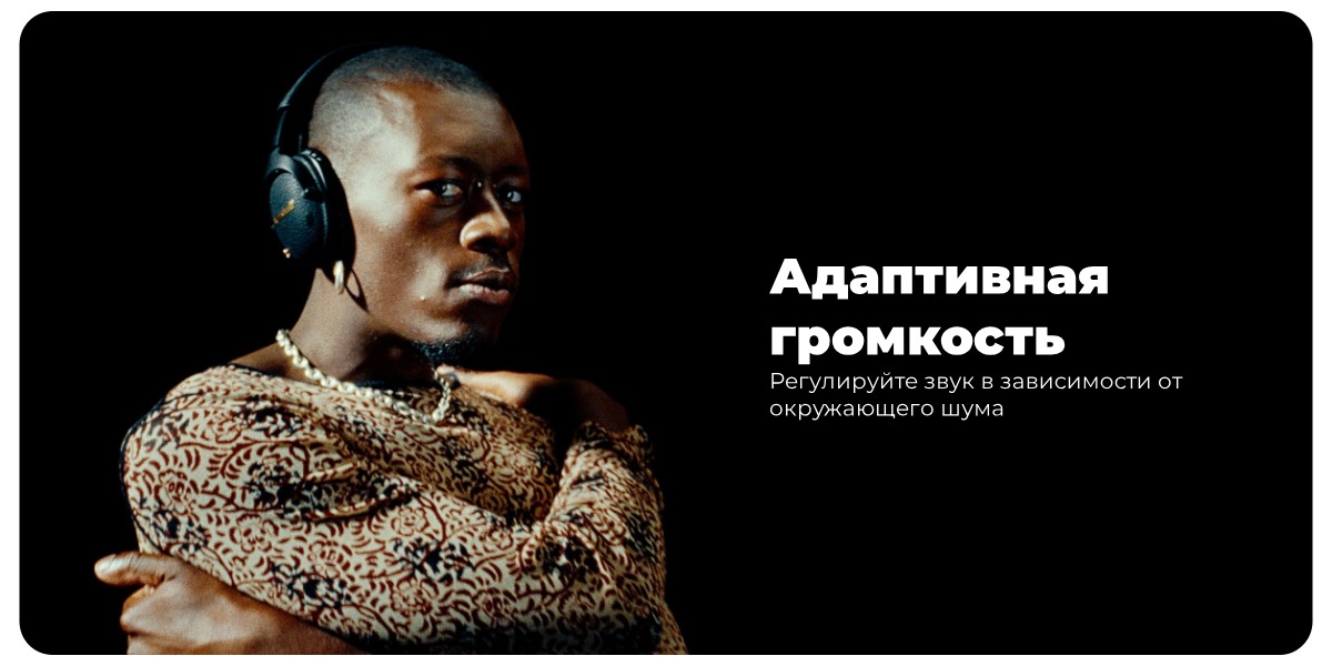 Адаптивная громкость сама подстраивается под уровень окружающего шума — наушники делают это за вас. Больше не нужно отвлекаться на ручные настройки.