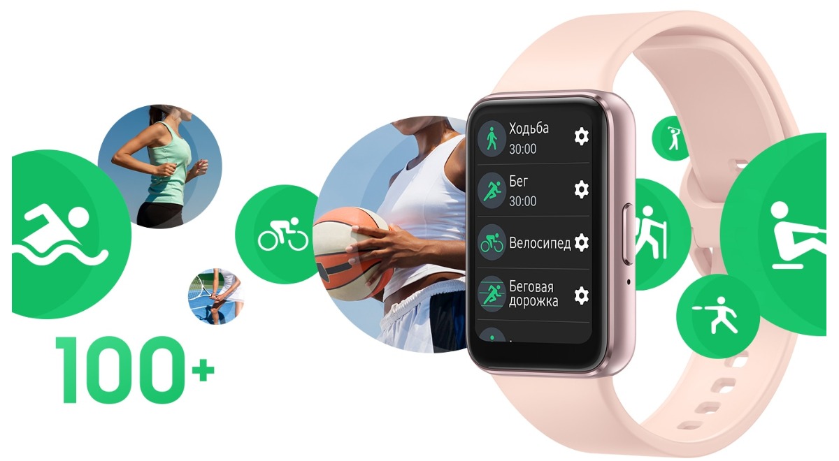 Samsung Galaxy Fit 3 получил яркий 1.6-дюймовый AMOLED-дисплей, который стал на 45% больше по сравнению с предыдущей моделью. Это делает просмотр уведомлений и тренировочных данных удобным даже на ходу. Лёгкий алюминиевый корпус не только придаёт стиль, но и обеспечивает комфортную посадку на руке. Более 100 уникальных циферблатов позволят настроить внешний вид под ваш вкус.