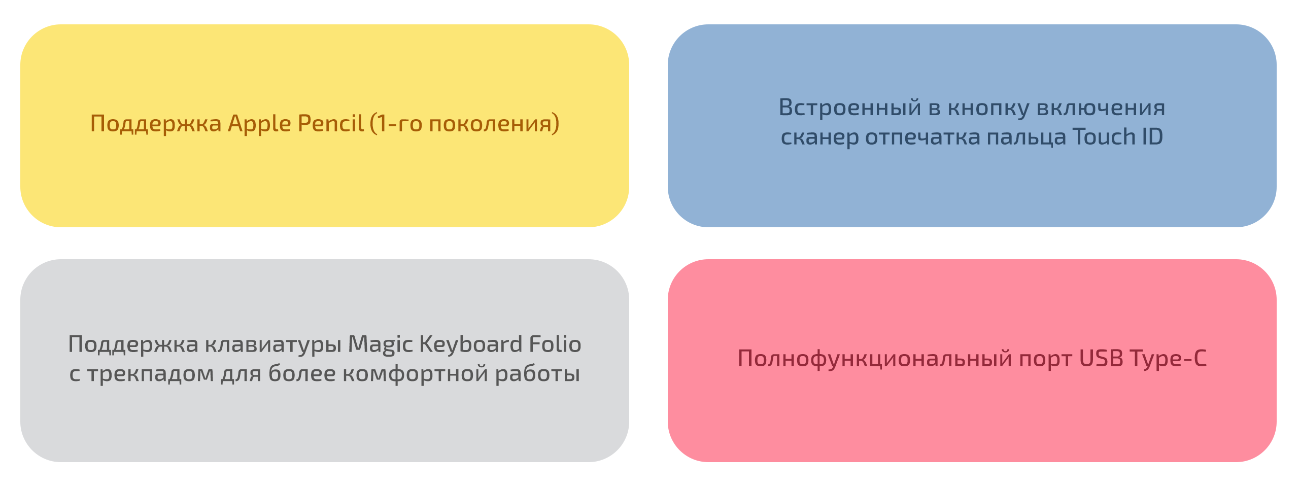 Тонкий и лёгкий корпус делает iPad идеальным для путешествий и учёбы. Стереодинамики обеспечивают качественный звук, а батарея на 10 часов работы позволяет не зависеть от розетки. Поддержка быстрой зарядки по Power Delivery — ещё один плюс для активных пользователей.