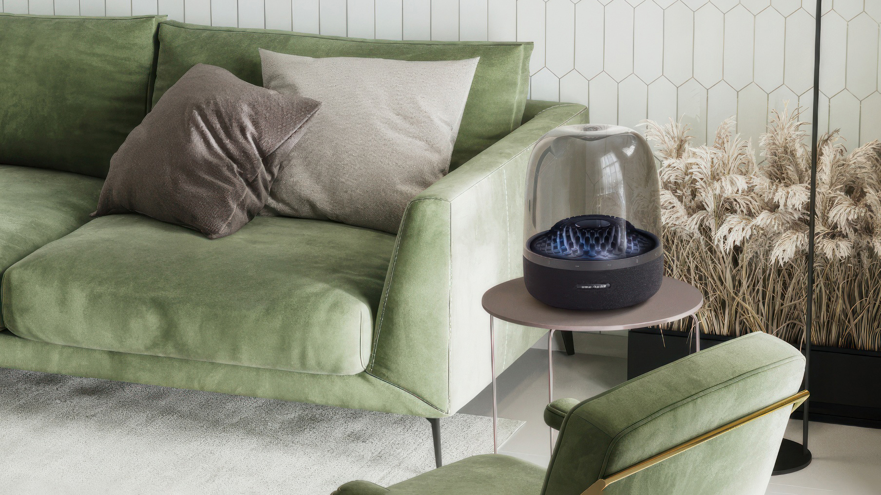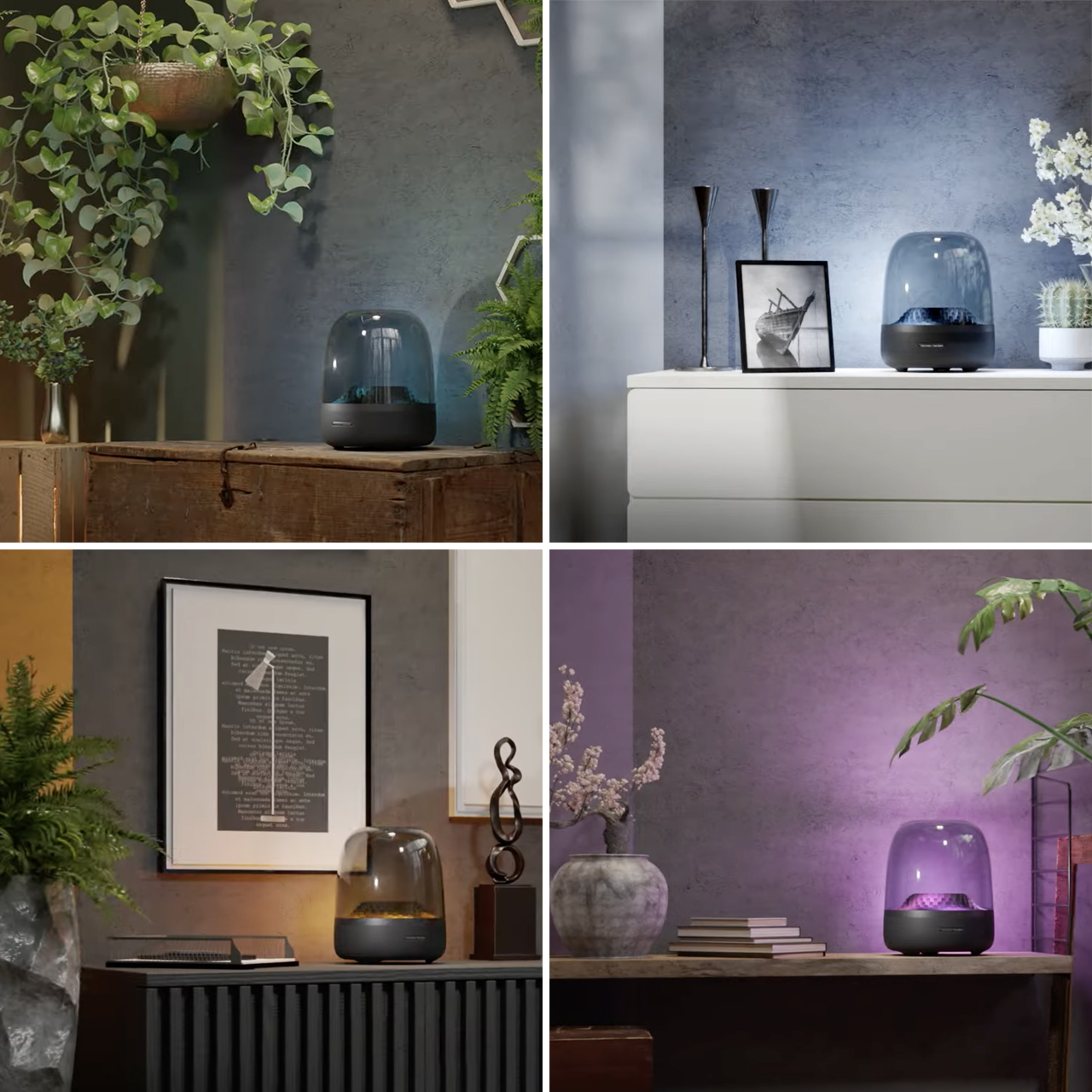 Aura Studio 4 — это не просто колонка, а настоящее произведение искусства. Её прозрачный купол в сочетании с волновой LED-подсветкой и 324 кристаллами создаёт эффектную игру света, подчеркивающую каждый музыкальный акцент. Уникальный визуальный стиль вдохновлён природными формами, а корпус устройства частично выполнен из переработанных материалов — это первый шаг Harman Kardon к экологичному производству.